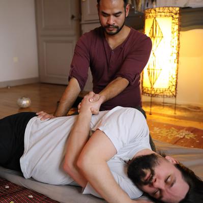 Nous travaillons sur les méridiens d’acuponcture, avec en plus, différents sens, tel que le toucher et le ressenti qui permettent de relever les déséquilibres du corps.